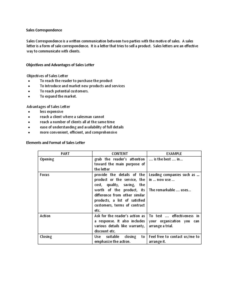 Here are some rules and guidelines to help turn your sales letters/emails into sales: State your objective or the purpose (get to the point) of your letter in . Advantages of sales letter a sales letter is less expensive. Reach a number of clients all at the . In this article, we explain what a marketing letter is and provide.